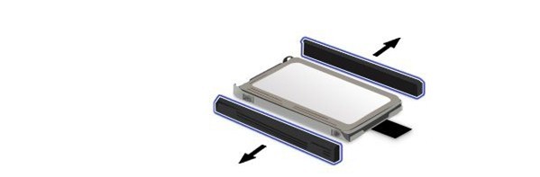 兩邊的塑膠墊子是用來減震使用的,下圖中取下來然后擰開固定硬盤的螺絲就可以更換了