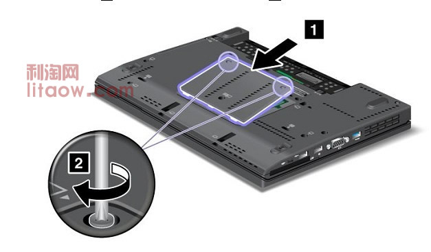 下圖中可以看到內(nèi)存的位置就在于背面后蓋下,圖片中首先將左右兩邊固定的螺絲按照圖片方向擰開后,抽出金屬后蓋就可以看到下面的內(nèi)存,很多二手X220T或者X220筆記本使用者覺得內(nèi)存不夠都會選擇自己動手來升級,和T420有點(diǎn)區(qū)別的是T420筆記本內(nèi)置的內(nèi)存也是兩個一個在正面鍵盤下面另外的一個槽則是在背面后蓋下和3G模塊的位子在一起, 而X220系列兩個內(nèi)存槽都在一起如果要升級內(nèi)存的話需要拆開鍵盤拆可以完成!