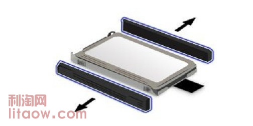 如果需要更換的話首先將兩邊的塑料減震拿出來(lái),然后一共還有四顆螺絲將金屬網(wǎng)架固定在硬盤(pán)上的也需要擰開(kāi)螺絲
