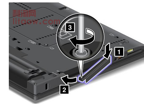 安裝硬盤(pán)蓋子的時(shí)候需要比較注意是相反的步驟,下圖中首先1放入擋板的右邊位置然后是擰上螺絲。