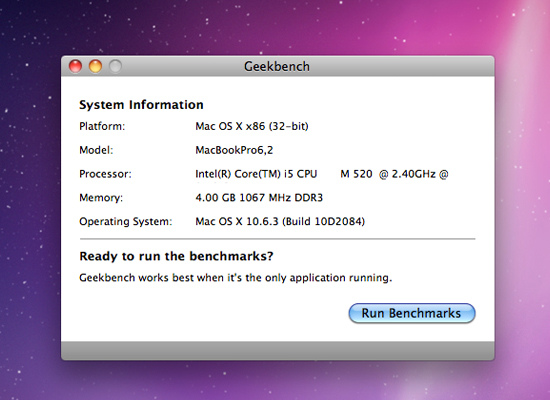 通過Geekbench測試軟件自檢可以看到MacBook Pro的基本配置