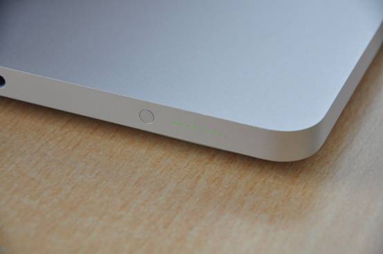 另外值得一提的是,在機(jī)身左側(cè)安置了電源的指示燈,只要按一下旁邊圓形的按鈕就可以以綠色點(diǎn)狀燈顯示剩余的電量。同時(shí),電源適配器接頭上具有狀態(tài)指示燈,用戶可以判斷MacBook Pro的充電狀態(tài):橘色為正在充電,綠色為完成充電。
