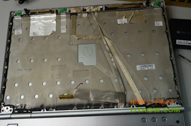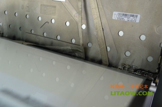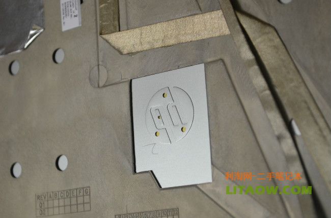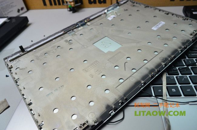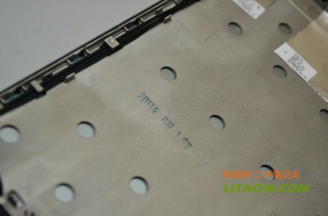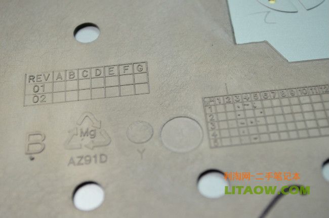 這里就是我們所看到的8460P 8560P筆記本的外殼A面金屬里面的樣子了,里面鎂合金設計了很多鏤空的小點,主要是為了減輕整體的重量而這樣設計的