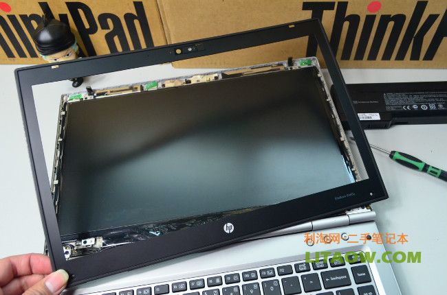 二手8460P只有兩顆螺絲來固定屏幕的框,下圖中左右兩個位置
