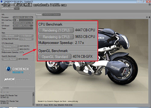 ▲處理器渲染能力測(cè)試(CINEBENCH R10)