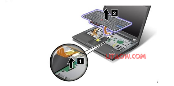 然后就可以看到這臺二手T420鍵盤下面的內存位置了,一般來說內存上面有個小的塑料片防止灰塵等,和后面的拆卸一樣按照下圖中操作就可以了