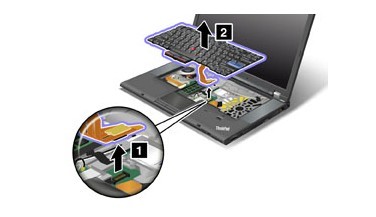 擰開螺絲后我們再將二手W510 T510翻轉(zhuǎn)回來,將計算機屏幕打開后按照下面的流程,先將鍵盤推進(jìn)去然后翻轉(zhuǎn)鍵盤取出來就可以了。