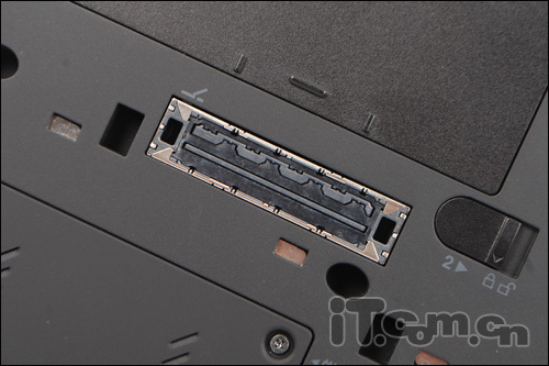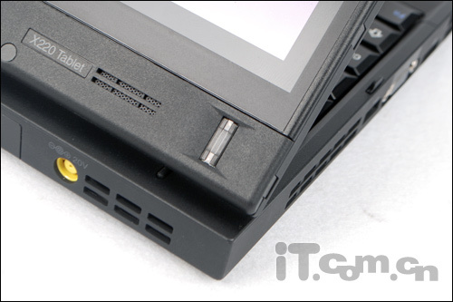 在機(jī)身的后端,ThinkPad X220 Tablet的電源適配器接口設(shè)計在了這里。不過在機(jī)身的前端,就沒有設(shè)計任何的接口了。不過在ThinkPad X220 Tablet的底部,設(shè)計了一個擴(kuò)展塢,這是許多像戴爾、惠普等品牌下的商務(wù)筆記本所必備的一些設(shè)計了。