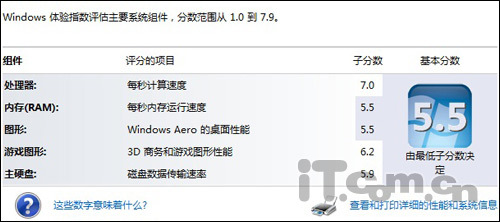 在Windows的自測成績中,我們看到雖然最低分出現(xiàn)在的是圖形以及內(nèi)存方面,但是5.5分的成績已經(jīng)不俗了,比一些入門級的獨(dú)顯的分?jǐn)?shù)還要高。對于滿足日常影音及娛樂的需求應(yīng)付起來還是綽綽有余的。