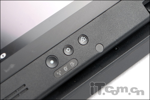另外,在ThinkPad X220 Tablet的屏幕左下方,設(shè)計有三個按鍵,分別是電源、旋轉(zhuǎn)屏幕、返回按鍵。而在屏幕的右下方是指紋識別器所在位置。這也是作為商務(wù)本,ThinkPad X220 Tablet的必要設(shè)置了。