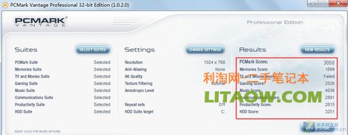 在以上單項(xiàng)測試后,我們對處理器、硬盤的性能有了一定程度的了解,隨后進(jìn)行的是PCMARK VANTAGE跑分測試,它可以評估筆記本在實(shí)際應(yīng)用中的表現(xiàn),譬如高清視頻播放、游戲、音樂、生產(chǎn)力、通信以及內(nèi)存、硬盤性能,聯(lián)想U(xiǎn)260在測試過程中總成績?yōu)?050分,其中音樂和硬盤較為突出。
