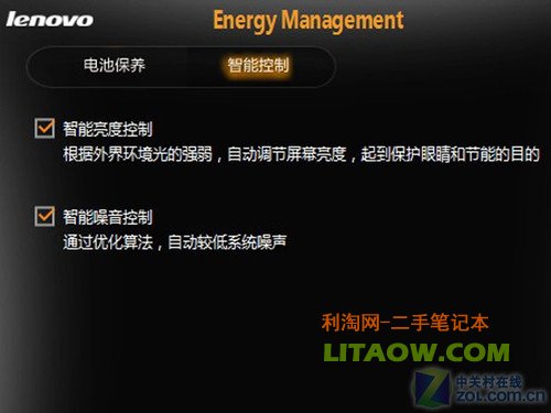 智能亮度控制的開關(guān)在“Energy Management”軟件里,開啟后,在室內(nèi)使用時(shí),電腦會自動調(diào)整好適中的亮度。為了模擬光線較暗的環(huán)境,我們用鏡頭蓋遮住光線感應(yīng)器,大約三四秒鐘,屏幕亮度就自動降了下來,整體反映還是比較迅速的。