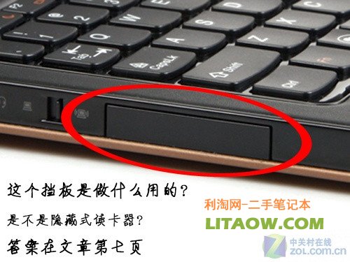 通常皮革工藝用于高端產(chǎn)品中,聯(lián)想ideaPad U260腕托處采用了這種手感柔軟的材料,具有意大利山羊皮般的質(zhì)感,邊緣處經(jīng)過細(xì)心處理,另外恒溫的皮革使得手掌放上去比較舒適,腕托右下角依然設(shè)計(jì)有標(biāo)志性的“ideaPad”字樣,視覺效果與普通ABS工程塑料上印刻的大有不同。