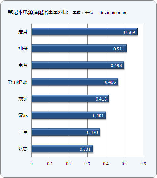 在保證質(zhì)量的前提下,我們自然是希望電源適配器越輕巧越好,通過以上對比,我們看到聯(lián)想部分筆記本的適配器已經(jīng)成功“瘦身”,不但體積減小了許多,而且重量也減輕了0.24千克左右。